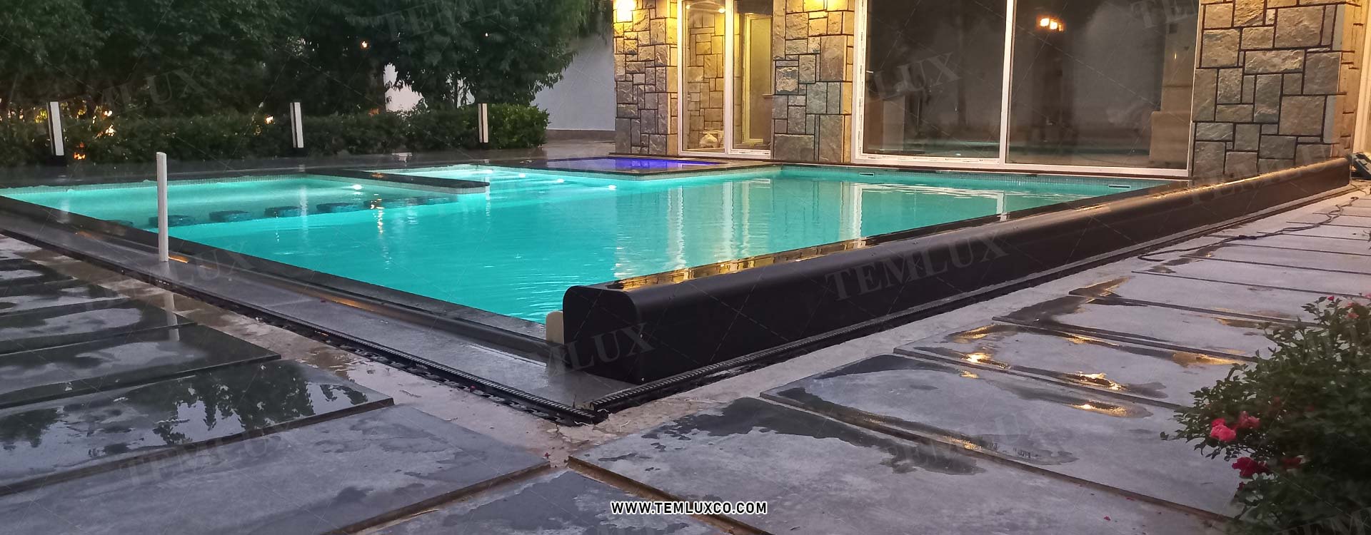 إنه غطاء يفتح ويغلق بالضغط على زر، مما يمنع دخول الأغصان والأوراق والأوساخ والحشرات، وبالتالي يحافظ على نظافة المسبح واستعداده الدائم. يضمن بيئة آمنة للأطفال والحيوانات الأليفة حول المسبح. كما يقلل من تبخر الماء وفقدان الحرارة، وفي الوقت نفسه يمنع دخول الأشعة فوق البنفسجية وتكوين الطحالب.